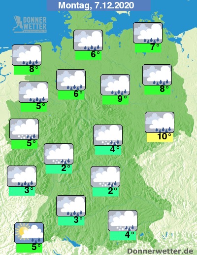 Höchsttemperaturen zwischen 1 Grad in Thüringen und 12 Grad in der Lausitz.