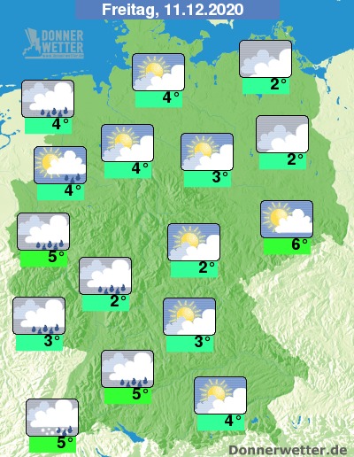 Höchsttemperaturen zwischen 3 und 8 Grad.