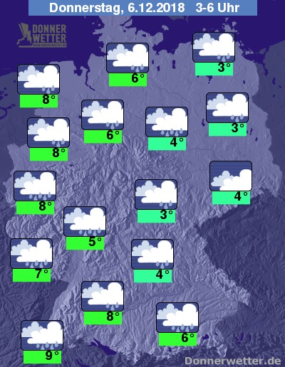 Die Luft kühlt bis zu den Frühstunden auf 2 bis 6 Grad in der Osthälfte und 5 bis 9 Grad in der Westhälfte ab.