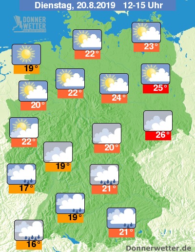 Heute Mittag und am frühen Nachmittag zeigt sich der Himmel in der Nordhälfte zunächst noch heiter oder nur locker bewölkt, an der Nordseeküste kann auch noch länger die Sonne scheinen. Im südlichen Deutschland überwiegen die Wolken, der Himmel ist meist stark bewölkt oder bedeckt, und immer wieder muss mit Schauern gerechnet werden.