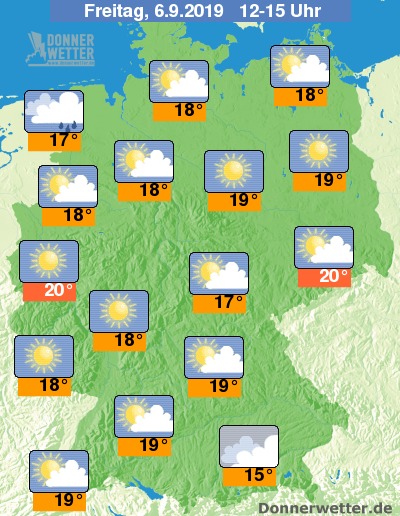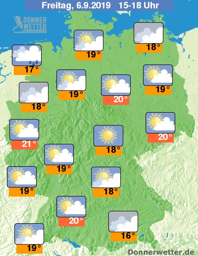 Die Temperaturen bewegen sich zwischen 15 Grad an den Alpen und 20 Grad im Westen, sowie in der Lausitz.