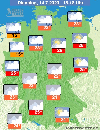 Die Temperaturen bewegen sich vom Münsterland bis nach Schleswig-Holstein meist nur zwischen 15 und 20 Grad, im großen Rest werden angenehme bis sommerliche 21 bis 28 Grad erreicht.