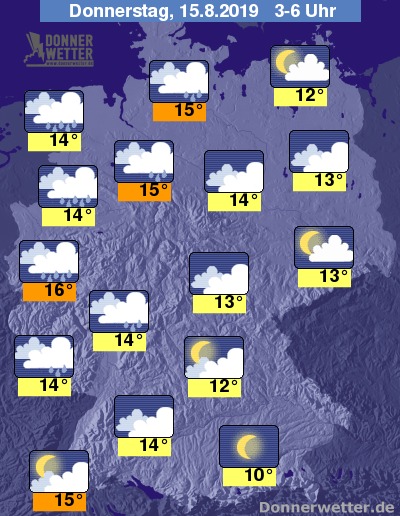 Bis zu den Frühstunden kühlt die Luft auf 9 bis 16 Grad ab, am kühlsten wird es dabei in Bayern, am mildesten bleibt es in den Ballungsgebieten des Westens.