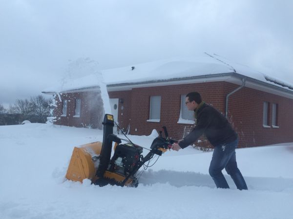 Karsten Brandt: Dieses Foto ist ein paar Jahre alt, als über 20 cm Neuschnee auf eine alte Schneedecke gab. So dick kommt es bis zum 4.Januar erst einmal nicht, allerdings glaube ich werde ich die Schneefräse dieses Jahr noch öfters nutzen. Bis zu 5 cm sind am 2. Januar in der Eifel möglich.