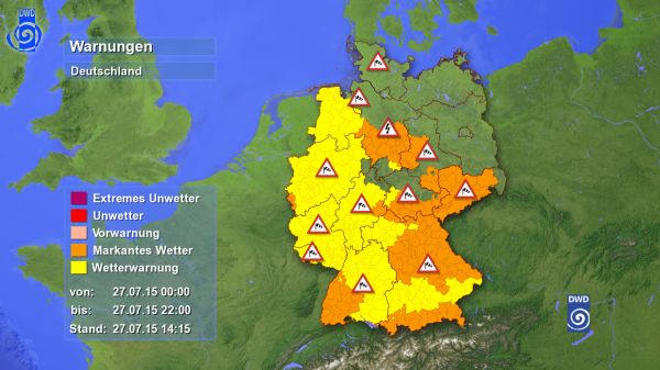 Heute Abend zeigt sich über dem Osten und Süden Deutschlands ein meist sternenklarer Himmel oder es ziehen nur lockere Wolken durch, dabei bleibt es trocken. Über den Westen, vor allem aber den Norden der Republik ziehen auch oft kompakte Wolken, die zu einzelnen Schauern, im Norden auch Gewittern führen können. Die Abendtemperatur liegt bei 19 Grad in Leipzig und 16 Grad am Hunsrück.