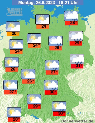 Heute Abend erreicht die Kaltfront auch den Osten und Südosten des Landes, dabei sind hier sowohl Schauer als auch Gewitter möglich. Über der Nordwesthälfte Deutschlands kann sich die Sonne wieder häufig zeigen und es zieht meist nur lockere bis aufgelockerte Bewölkung durch, dabei bleibt es trocken. Die Temperatur liegt bei 20 Grad in Wilhelmshaven und bis 31 Grad in Dresden.