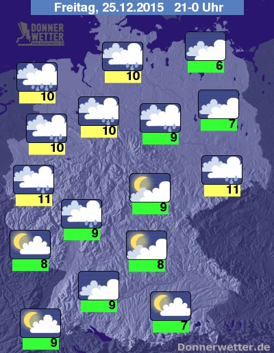 Heute Nachmitag bleibt es im Süden und anfangs auch im Osten und Nordosten locker bis aufgelockert bewölkt und trocken. Über den Westen und Norden ziehen bereits dichte Wolken aus denen es zeitweise regnet, zum Abend hin breiten sich die Regenwolken auch auf die östlichen Landesteile hin aus. Im Nordosten, äußeren Osten und im Süden bleibt es jedoch trocken. Die Temperatur liegt bei 8 Grad an der Müritz und etwa 13 Grad im Oberrheingraben. An Nord- und Ostsee weht starker und teils stürmischer Wind, dabei sind Sturmböen möglich.