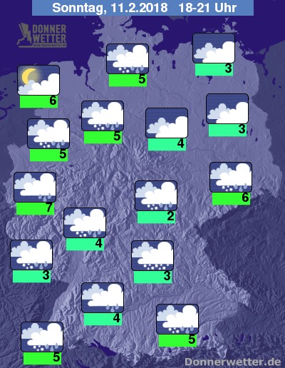 Heute Abend sind an der Nordsee Auflockerungen möglich, sonst hält sich die Bewölkung jedoch weitgehend dicht bewölkt, dabei fällt wiederholt Regen, Schneeregen oder Schnee. Die Temperatur liegt bei 2 bis 7 Grad.