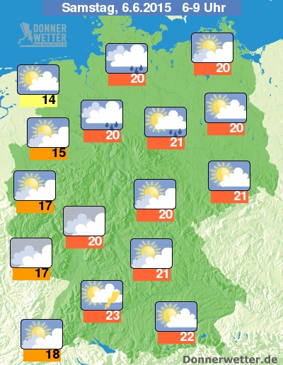 Die Temperaturen liegen am Morgen bei Werten um 14 Grad C in Ostfriesland und um 23 Grad in Stuttgart.