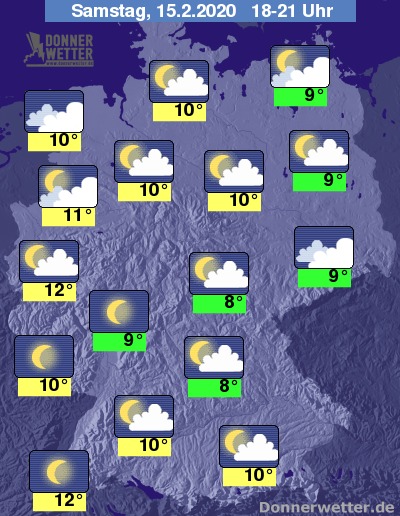 Heute Abend ist es besonders in einem breiten Steifen von Südwest- bis nach Nordostdeutschland oft nur gering bewölkt oder sternenklar. Im übrigen Bundesgebiet ist es mehrheitlich aufgelockert, direkt an der Nordsee und im Südosten weitgehend stark bewölkt, dazu bleibt es trocken. Die Temperatur liegt bei 8 bis 12 Grad. An der Nordsee weht ein stürmischer Wind mit teils schweren Sturmböen.