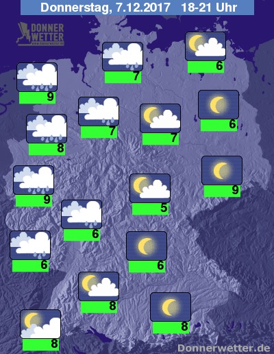 Bis zum Morgen verschieben sich die Niederschläge zunehmend südostwärts und erreichen dann auch das Erzgebirge, den Bayerischen Wald und den Alpenrand, während es im Norden langsam wieder abtrocknet. Oberhalb von 400 bis 700 Metern geht der Regen im Lauf der Nacht mehr und mehr in Schnee über. Am Morgen ist verbreitet mit Straßenglätte zu rechnen.
