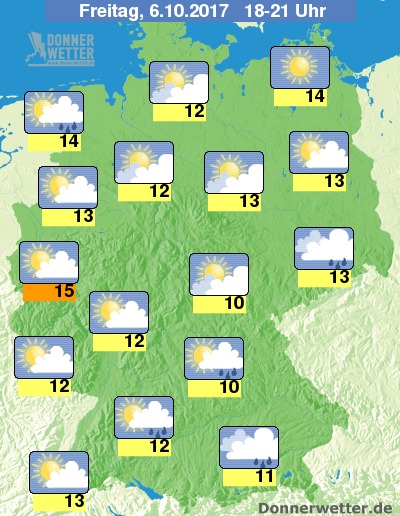 Am Samstag ziehen von Nordwesten her dichte Wolken übers Land hinweg, dabei fällt verbreitet, zum Teil auch langanhaltender Regen. Auflockerungen zeigen sich am ehesten im Süddeutschen Raum. Die Temperatur steigt auf 10 Grad im Thüringer Becken und bis 15 Grad im Breisgau. Im Norden weht ein teils starker, an den Küsten auch ein stürmischer Wind.