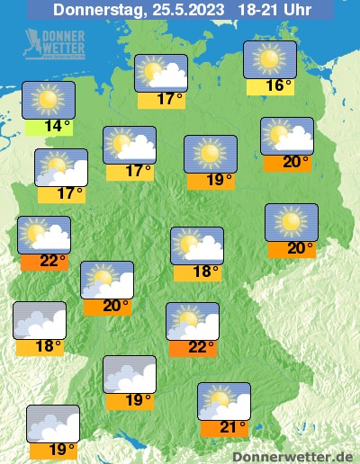 Heute Abend halten sich im Südwesten und Süden oft viele und auch dichte Wolken, dazu bleibt es weitgehend trocken. Weiter nach Norden hin ist es verbreitet heiter bis sonnig und dabei trocken. Die Temperatur liegt bei 14 Grad in Bremerhaven und etwa 22 Grad in Nürnberg.