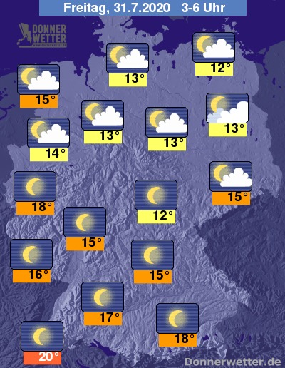 Tiefstwerte um 20 bis 12 Grad.