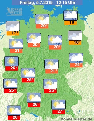 Die Temperaturen bewegen sich in der Nordhälfte meist zwischen 17 und 24 Grad, in der Südhälfte werden sommerliche 25 bis 29 Grad erreicht.