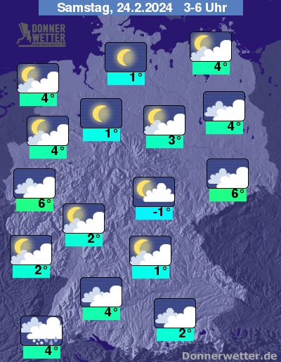 In der Nacht auf Samstag ist es wechselnd oder stark bewölkt, in der Nordwesthälfte klart der Himmel auch gebietsweise auf. Im Südwesten können in der Nacht zeitweise Niederschläge fallen, sonst bleibt es meist trocken.