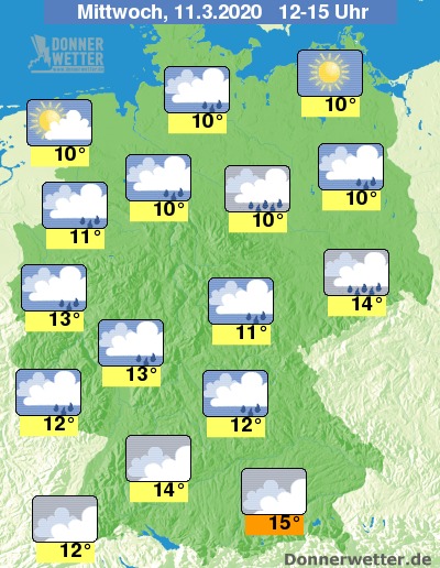 An der Wetter- und Temperaturverteilung ändert sich bis zum frühen Abend wenig. Möglicherweise bricht die Wolkendecke auch mal südlich der Donau auf und macht für einige Zeit der Sonne Platz.