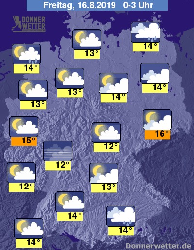 In der Nacht auf Freitag können an den Küsten sowie am Alpenrand zunächst noch einzelne Schauer fallen, in den übrigen Landesteilen bleibt es bei lockerer Bewölkung weitgehend trocken. An Main und Donau kann sich stellenweise Nebel bilden.