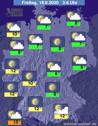 Bis zu den Frühstunden kühlt die Luft auf 12 bis 6 Grad ab, lediglich im Breisgrau bleibt es mit Werten um 15 Grad noch etwas milder.