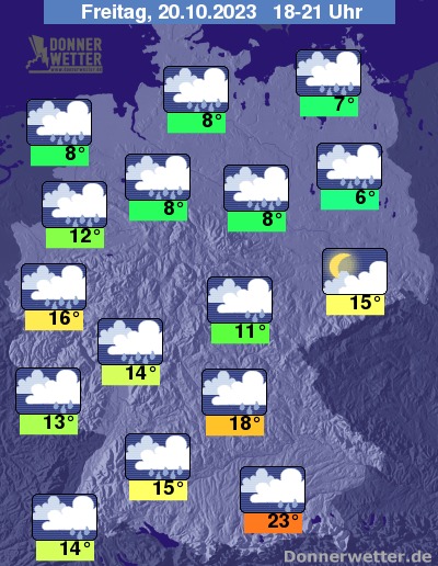 Heute Abend ziehen weiterhin kompakte Wolken übers Land hinweg und es fällt immer wieder, teils kräftiger und auch langanhaltender Regen. Die Temperatur liegt bei 6 Grad in Berlin und bis 23 Grad in München. Im Küstenumfeld weht ein oft stürmischer Wind, direkt an der See herrscht noch verbreitet Sturm.