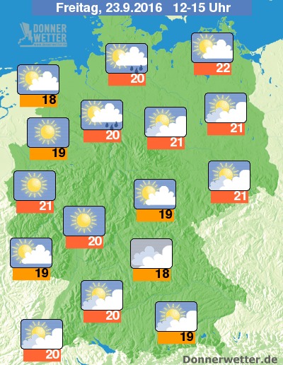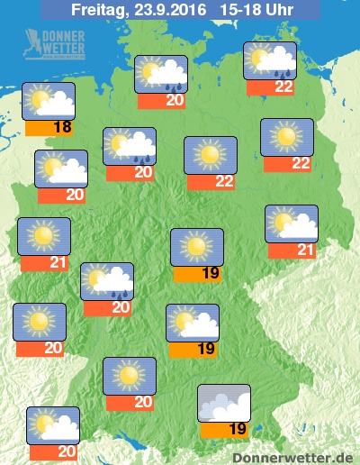 Die Temperaturen erreichen Höchstwerte um 18 Grad C in Ostfriesland und um 22 Grad C in Berlin.