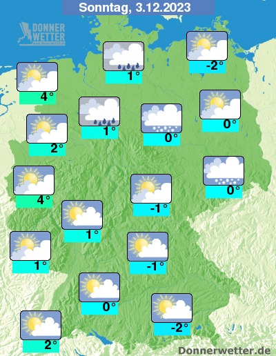 Temperaturen am Sonntag um -2 bis 4 Grad.