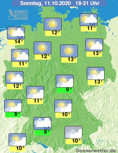 Heute Abend halten sich über dem Süden weiterhin dichte Wolken und es fällt hier gebietsweise Regen. Oft stärker bewölkt, jedoch trocken ist es von Thüringen, über Sachsen bis ins südlichen Brandenburg. Im großen Rest des Landes ist es hingegen meist nur locker bewölkt bis sonnig und bis auf einzelne Schauer an den Küsten auch trocken. Die Temperatur liegt anfangs noch bei 9 bis 14 Grad.