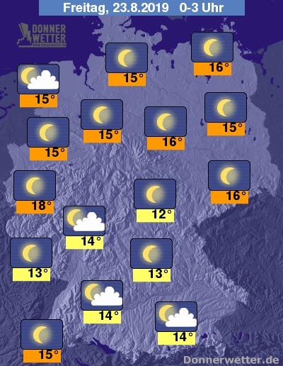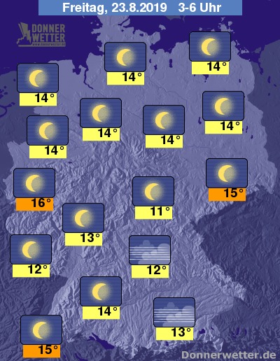 In der Nacht funkeln die Sterne von einem meist wolkenlosen Himmel, einzelne lockere Wolken halten sich zunächst an der Nordseeküste und regional im Süden. Im weiteren Verlauf kann sich vor allem im Südosten stellenweise Nebel bilden. Es bleibt trocken.