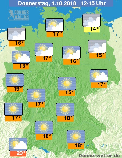 Am frühen Nachmittag strahlt in der Mitte und im Süden verbreitet die Sonne und heizt die Luft bereits wieder auf oktobertaugliche 15 bis 20 Grad. Über den Norden ziehen allerdings zeitweise dichtere Wolkenfelder hinweg. Möglicherweise können hier stellenweise sogar einige Tropfen fallen. Die Temperaturen bleiben hier mit 14 bis 17 Grad noch etwas zurückhaltend.