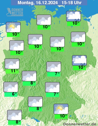 Am Montagnachmittag zeigt sich der Himmel über weiten Landesteilen stark bewölkt oder es ist bedeckt. Es bleibt weitgehend trocken, etwas Regen kann vor allem im äußersten Nordosten Deutschlands fallen.