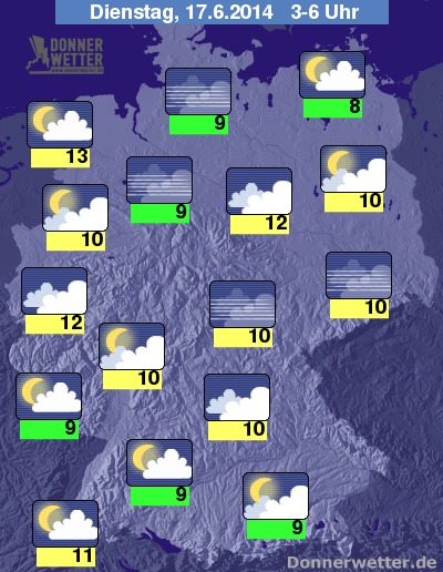 In der Nacht ist es hier und da stärker bewölkt, Regen fällt dabei aber kaum. Gebietsweise kann sich etwas Dunst bilden. Die Temperatur geht auf eher milde 13 bis 9 Grad zurück.