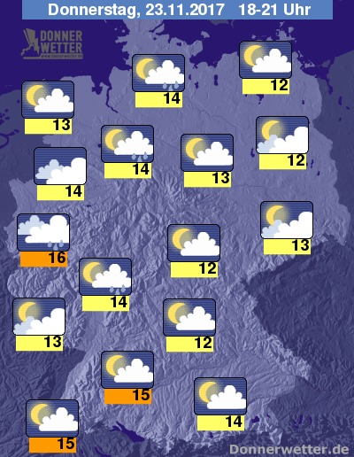 Dazu steigt das Thermometer am späten Nachmittag entlang des Rheins auf ungewohnt milde 16 Grad. Bei maximal 12 Grad bleibt es in Thüringen und im nördlichen Bayern etwas kühler.