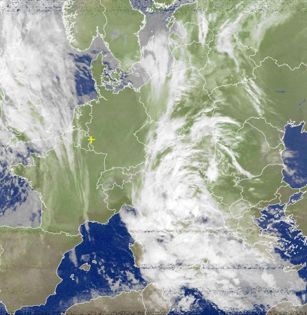 Auf dem Satellitenbild von heute Morgen zeigte sich Deutschland unter Zwischenhocheinfluss verbreitet nur gering oder aufgelockert bewölkt und trocken, dagegen sorgt ein Tiefdrucksystem im zentralen Mittelmeerraum weiterhin für teils kräftige und anhaltende Regenfälle. In Italien fielen gebietsweise über 100 Liter Regen auf einen Quadratmeter binnen nur 24 Stunden, selbst in Rom kam es in einigen Stadtteilen zu Überschwemmungen.