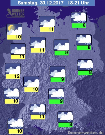 Heute Abend bleibt uns die dichte Wolkendecke verbreitet erhalten, dazu fällt besonders im Süden und Südwesten, aber auch von Sachsen bis zur Ostsee zeitweise Regen. Die Temperatur liegt bei 8 bis 12 Grad. An Nord- und Ostsee weht ein teils stürmischer Wind.