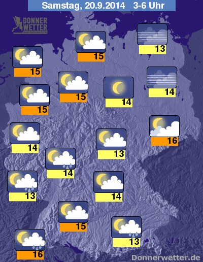 Es bildet sich stellenweise Nebel oder Dunst. Die Temperatur sinkt auf 16 Grad in Dresden und 13 Grad im Allgäu.