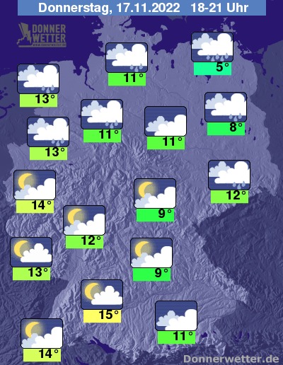 Heute Abend fällt im Norden und Osten unter dichten Wolken gebietsweise Regen. Im übrigen Land ist es oft aufgelockert, teils auch stark bewölkt und dazu überwiegend trocken. Die Temperatur liegt bei 5 Grad in Neubrandenburg und 15 Grad in Stuttgart. An den Küsten ist es verbreitet stürmisch.