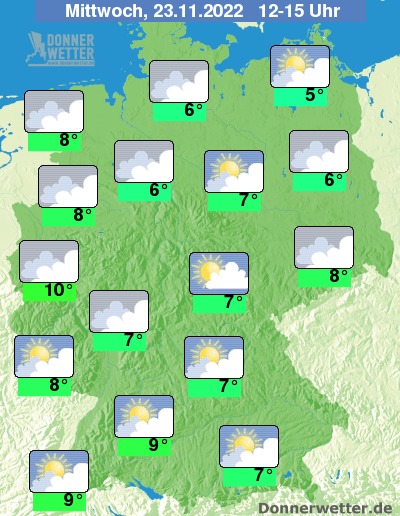 Heute Nachmittag ist es über Deutschland größtenteils trüb oder stark bewölkt, hier und da sind Auflockerungen möglich. Es bleibt weitgehend trocken bei 5 Grad an der Müritz und bis 10 Grad am Rhein.