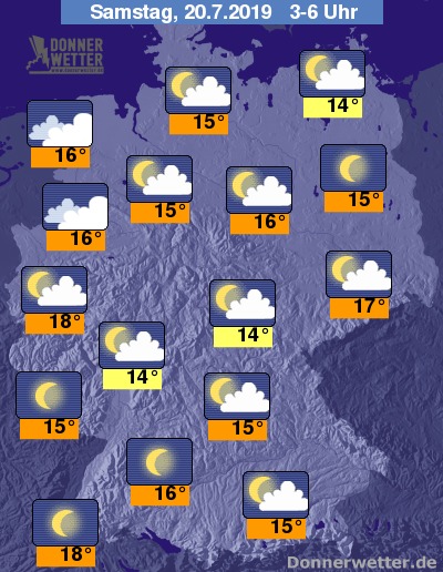 Während der zweiten Nachthälfte klart der Himmel im Südwesten und über Brandenburg vermehrt auf, sonst ziehen lockere Wolkenfelder vorüber, welche im Nordwesten auch mal dichter werden können.