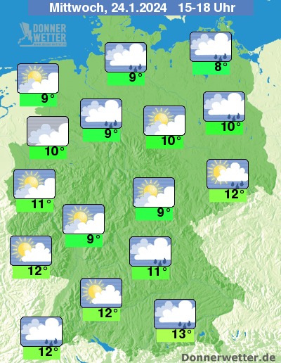 Am Nachmittag zeigt sich der Himmel wechselnd oder stark bewölkt, im Westen und Nordwesten bleibt es dabei bereits meist trocken. Schauer sind am Nachmittag vor allem noch in der Osthälfte zu erwarten, am Alpenrand auch noch anhaltender Regen.