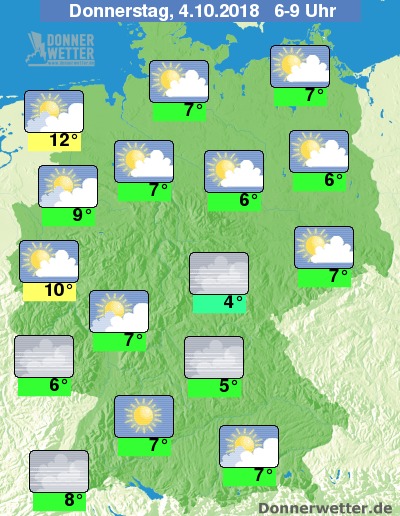 Der Donnerstag startet dann vielerorts mit einem Mix aus Sonne und lockeren Wolken, in der Südhälfte kann sich anfangs auch noch zäherer Nebel halten. Schauer sind in den Frühstunden nicht zu erwarten.