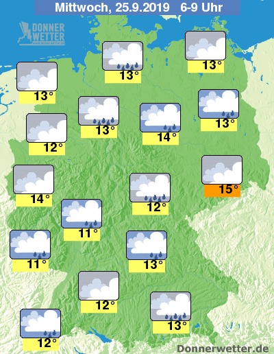 Die Wochenmitte beginnt über weiten Teilen des Landes mit einer geschlossenen Wolkendecke. Verbreitet muss in den Frühstunden mit Schauern gerechnet werden, an der Weser, in der Mitte sowie am Alpenrand kann es auch kräftiger regnen.