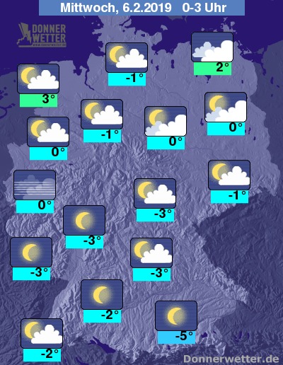Die Temperaturen erreichen am frühen Morgen Werte um -6 Grad C am Alpenrand und um 2 Grad C in Emden.
