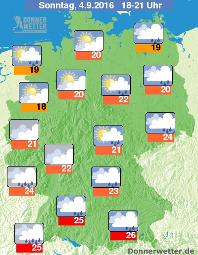 Heute Abend ist es im Westen und Nordwesten des Landes teils aufgelockert, teils aber auch stark bewölkt, dazu sind nur noch vereinzelt Schauer möglich. Im Rest der Republik überwiegt starke Bewölkung mit nur gebietsweisen Auflockerungen, dabei bilden sich wiederholt Schauer und es sind auch örtliche Gewitter möglich. Die Temperatur liegt bei 18 Grad am Niederrhein und etwa 26 Grad in München.