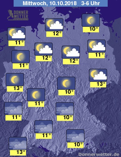 In der Nacht zeigt sich der Himmel in der Nordosthälfte des Landes meist locker bewölkt, im Südwesten ist es teils sternenklar, vielfach kann sich auch Nebel bilden. Es bleibt trocken.