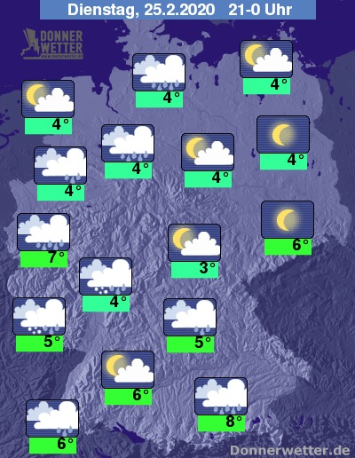 Vor Dämmerungsbeginn bewegen sich die Temperaturen zwischen 6 Grad an der Emsmündung und 12 Grad rund um München.