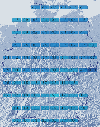 Deutschland friert aktuell. Fühlbare Temperaturen verbreitet in der Mitte und im Osten um -2 Grad C. Es wird aber besser. Zur Wochenmitte erwarten wir 15-19 Grad C.
