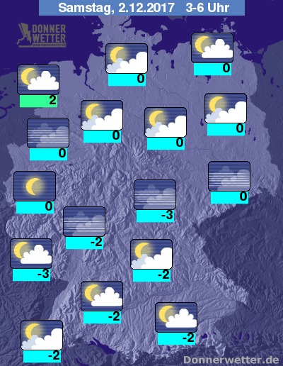 Am Samstag zeigt sich häufig die Sonne und es ziehen, wenn überhaupt meist nur lockere Wolkenfelder durch. Besonders im Osten und am Alpenrand halten sich die Wolken jedoch auch gebietsweise dicht, dazu bleibt es trocken. Die Temperatur steigt nur auf 1 bis 6 Grad.
