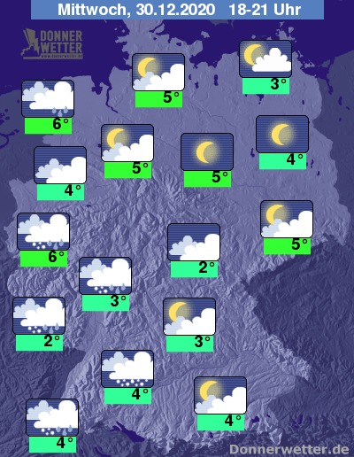 Am Abend kann es im Südwesten und Westen zu örtlichen Niederschlägen oder Schauern kommen. In den Bergen fällt Schnee, im Flachland meistens Regen oder Schneeregen. Im übrigen Land bleibt es wechselnd bewölkt, teilweise zeigen sich die Sterne auch mal für längere Zeit.
