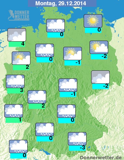 Der heutige Tag startet verbreitet mit zeitweiligen Schneefällen, nach Westen und Nordwesten sind auch teils Schneeregen oder Regen möglich, dazu kann es verbreitet glatt auf den Straßen sein. Im Nordosten und Osten ist es dagegen meist schon heiter und trocken. Im Tagesverlauf verlagern sich die Schneewolken immer mehr auf die Südhälfte der Republik. Im Norden kann es dann gebietsweise auflockern und es bleibt dabei trocken. Die Temperatur steigt auf -3 Grad in München und bis 4 Grad in Emden.