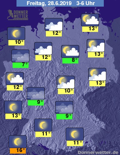 Bis Mitternach kommen immer mehr die Sterne zum Vorschein, nur über den Norden segeln teilweise noch einige Wolken hinweg. An den Alpen kann es stellenweise noch nass werden.